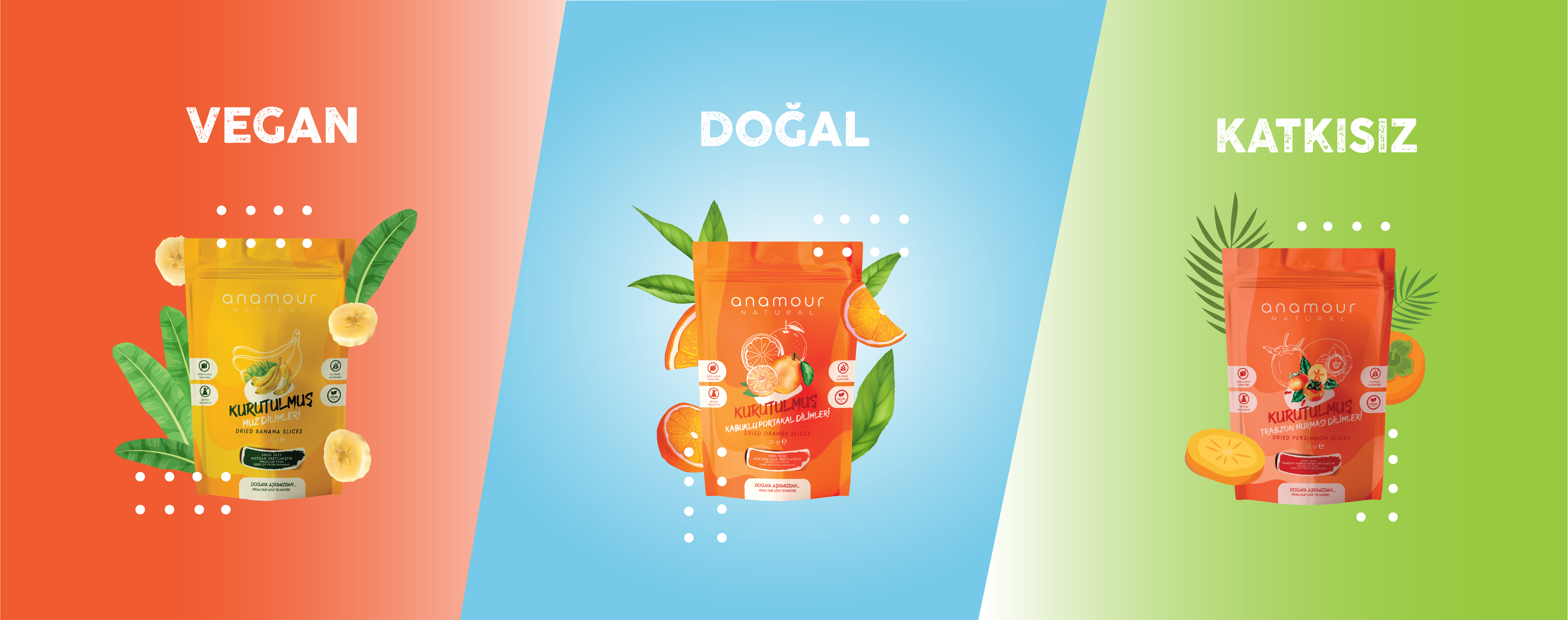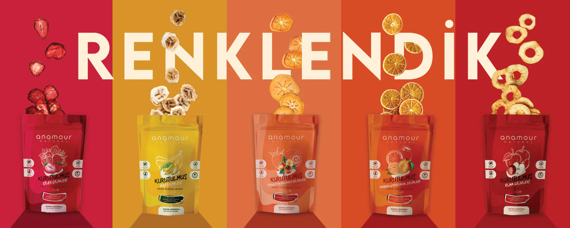 tanır, ardından bunlar tesisimize taşınır. Burada meyveler, Gıda Güvenliği Ekibimizin gözetiminde hijyenik bir ortamda titiz kurutma ve paketleme süreçlerinden geçer. Her meyve çeşidi, lezzet, aroma, lif ve vitamin gibi karakteristik özelliklerini korumak üzere özel olarak işlenir, kurutulur ve paketlenir.
